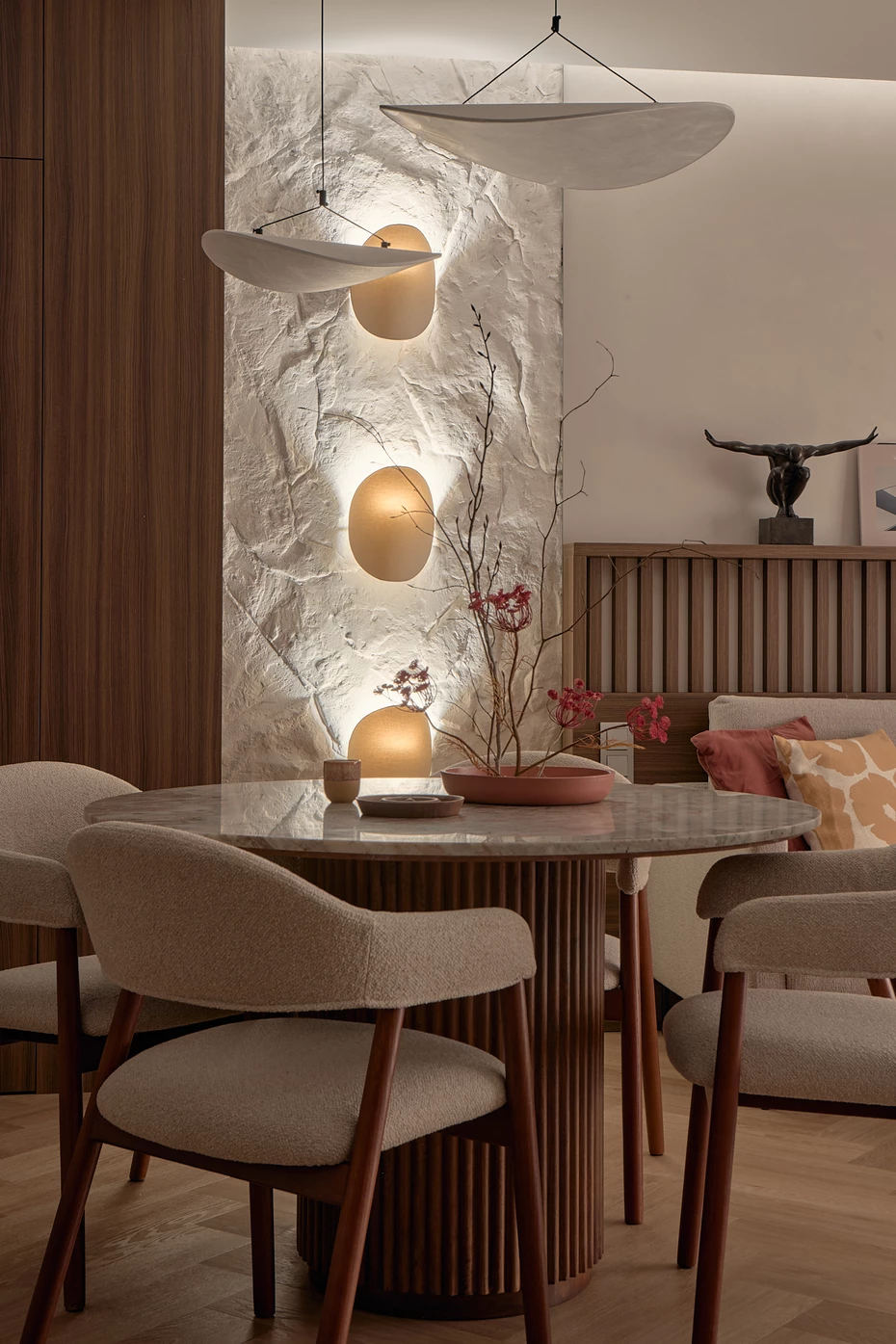 W 70-metrowym mieszkaniu duet Bran&Pine stworzył przestrzeń, która jest czymś znacznie więcej niż eleganckim lokum. To osobista opowieść o kobiecości, harmonii i potrzebie spokoju – portret właścicielki, młodej prawniczki, podróżującej po świecie i szukającej balansu między intensywnym rytmem życia a domowym ukojeniem.
