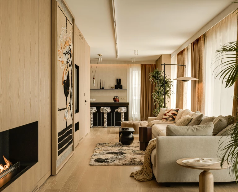 Niedaleko Bulwarów Wiślanych w Warszawie powstał apartament, który trudno pomylić z jakimkolwiek innym. To 150 metrów kwadratowych starannie zaprojektowanej przestrzeni oraz 50-metrowy taras – miejski azyl stworzony dla pary pragnącej mieć w stolicy własną artystyczną przystań. Paweł Łęczycki z pracowni modeko.studio zredefiniował tu pojęcie luksusu.