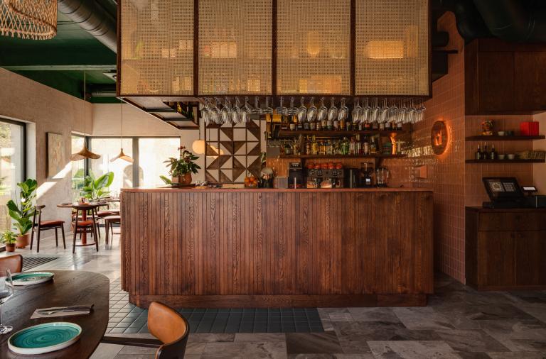 Naturalne materiały i kolory ziemi w nowym lokalu od Blu Pizzeria w Rijadzie