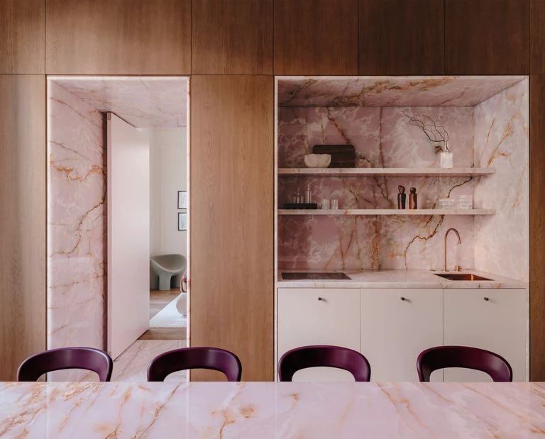Tuż obok ikonicznego Passeig de Gràcia, w samym centrum katalońskiej stolicy, powstało wnętrze, które redefiniuje pojęcie luksusowego wynajmu. Projekt „Pink Affair” autorstwa Miriam Barrio Studio to zmysłowa gra materiałów, w której różowy onyks spotyka się z katalońskim modernizmem. Realizacja została dostrzeżona przez międzynarodowe jury, zdobywając nominację w prestiżowym plebiscycie Dezeen Awards 2025.