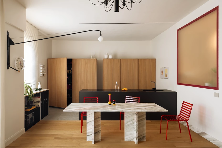Na warszawskim Żoliborzu, w jednym z wysokich bloków z epoki PRL, Szymon Chwazik zaprojektował mieszkanie, które prowadzi świadomy dialog z kontekstem miejsca i jego historią. Projektant sięgnął po dziedzictwo minionych lat, ale zinterpretował je przez pryzmat współczesnych środków wyrazu.