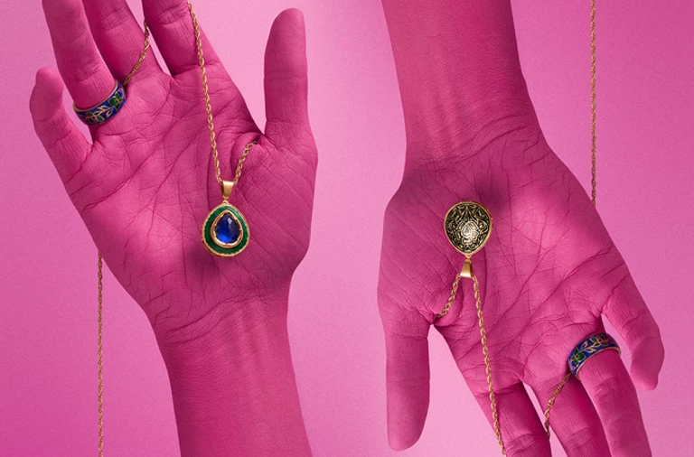 Aby stworzyć tę biżuterię, Anna Orska zawędrowała do Indii, a konkretnie do Jaipuru, gdzie zatrzymała się w warsztacie specjalizującym się w minakari – jednej z najstarszych technik emaliowania metalu. Każdy element z nowej kolekcji ma dwie strony: jedną stworzoną dla świata, a drugą znacznie bardziej intymną.
