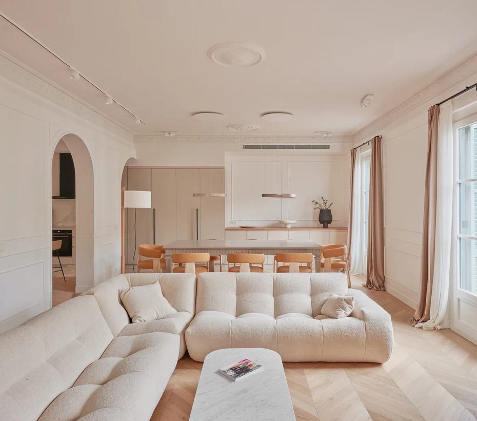 Od początku było jasne, że projekt nie obejmie jedynie zwykłej modernizacji. Właściciele, którzy dużo podróżują i kolekcjonują sztukę, zgromadzili bogaty zbiór dzieł, obiektów designu oraz odziedziczonych mebli. Ich precyzyjne wytyczne jasno określiły kierunek – mieszkanie miało nie tylko pomieścić tę kolekcję, ale też odpowiednio ją wyeksponować i współtworzyć jej charakter.