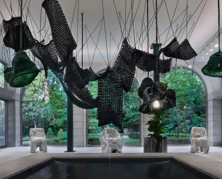 Wchodzisz do butiku Bottega Veneta przy Via Sant’Andrea, a nad fontanną na pierwszym piętrze zamiast klasycznego handlowego sufitu widzisz splątane, zielono‑czarne liny skóry, które bardziej przypominają roślinne pnącza nad wodą niż instalację w luksusowej przestrzeni retailowej. To „Lightful” - najnowszy rozdział dialogu domu mody z koreańskim artystą Kwangho Lee, pokazany podczas Milan Design Week 2026.