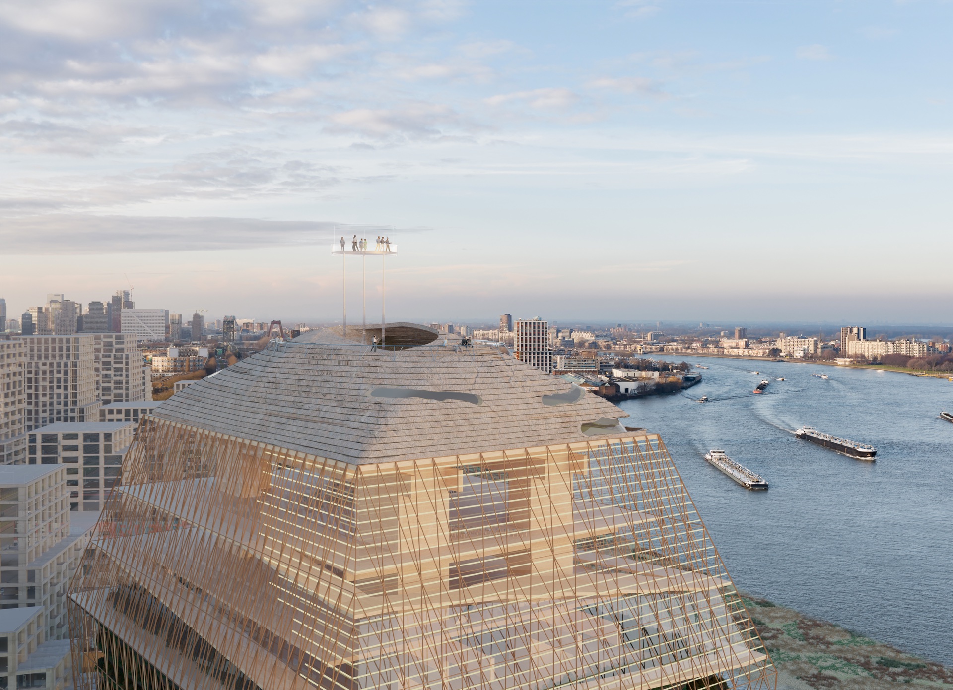MVRDV zaproponowało zespół nawarstwionych „żywych skał”, które stworzą nowy krajobraz architektoniczny nad rzeką. Porowata struktura budynków pozwala na przenikanie się przestrzeni publicznych i zieleni, przekształcając obiekt w miejski ekosystem. Koncepcja nawiązuje do eksperymentalnego charakteru Rotterdamu.