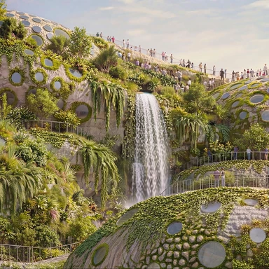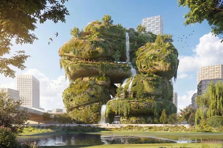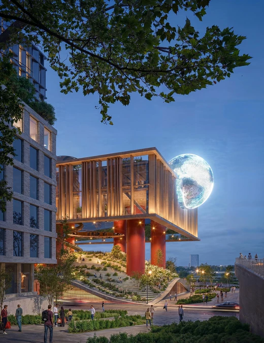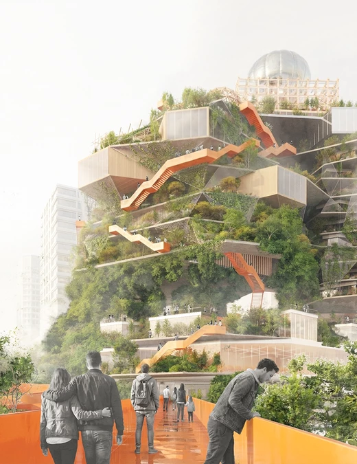 Koncepcja Mecanoo to wyrazisty obiekt poświęcony idei zrównoważonego rozwoju. Projekt opiera się na wykorzystaniu upcyklingu, magazynowania dwutlenku węgla, neutralności energetycznej oraz integracji z otaczającym środowiskiem. Budynek łączy różne typy przestrzeni – od miejsc do eksploracji i nauki po przestrzenie rekreacyjne – tworząc środowisko sprzyjające wspólnemu działaniu.