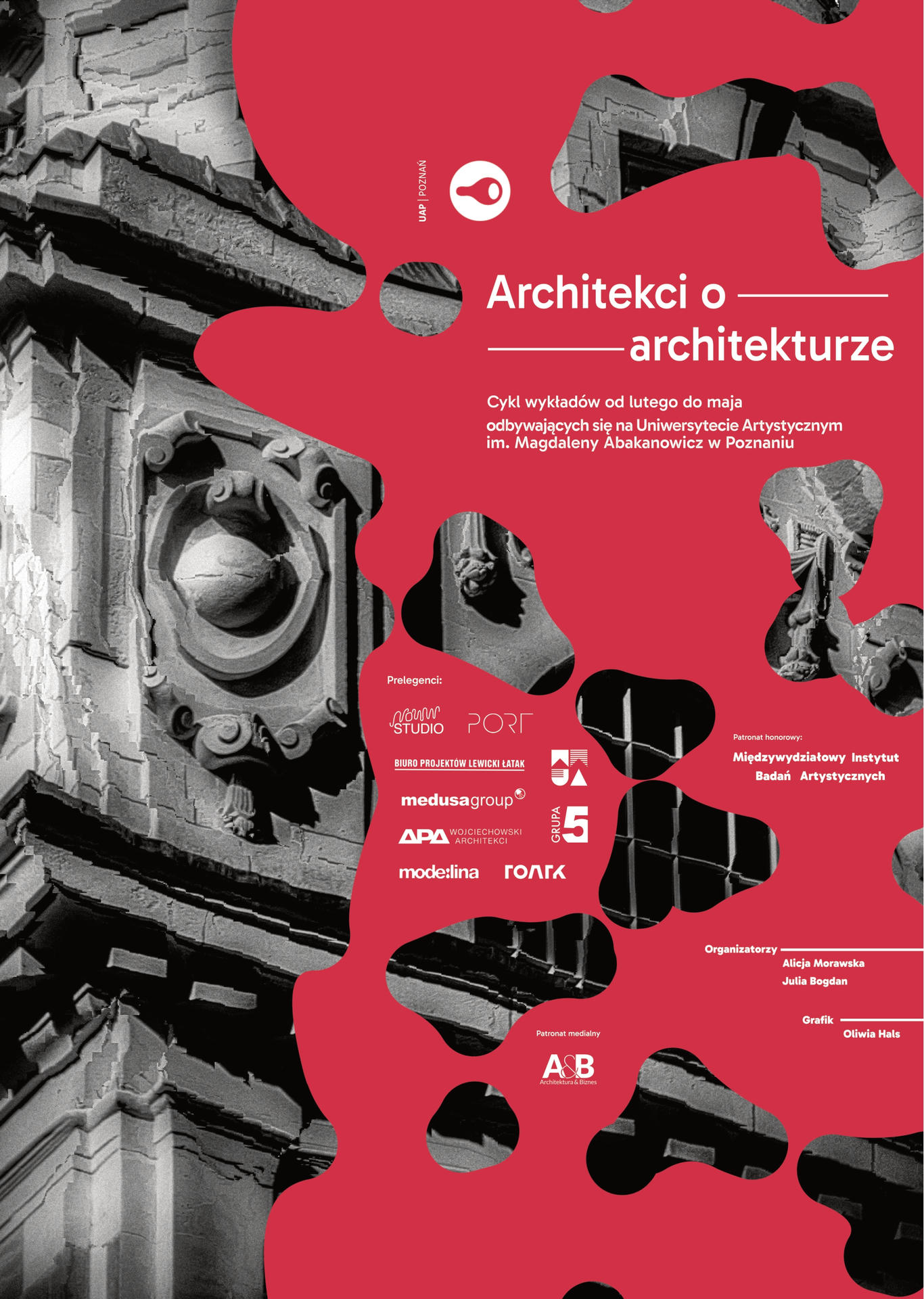 „Architekci o architekturze” to cykl wykładów, który odbywa się na Uniwersytecie Artystycznym im. Magdaleny Abakanowicz w Poznaniu i potrwa jeszcze do maja 2026 roku. W ramach spotkań występują przedstawiciele biur architektonicznych z całej Polski.