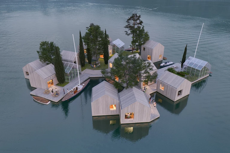 Naukowcy od lat alarmują o wzroście średnich temperatur powietrza i oceanów, topnieniu śniegu i lodu oraz podnoszeniu się poziomu mórz. Z postępującymi zmianami klimatu wiążą się liczne zagrożenia – jednym z nich jest kryzys związany z zalewaniem lądów, w tym terenów zamieszkanych. W odpowiedzi na te problemy duńskie studio architektury morskiej MAST zaprezentowało innowacyjny system do budowania budynków na wodzie „Land on Water”. Projekt powstał przy wsparciu biznesmena z branży budowlanej Huberta Rhomberga i studia Fragile.