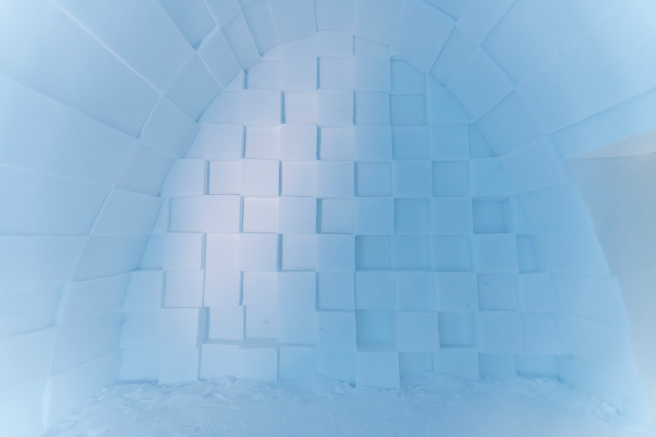 Już od progu uwagę zwraca ściana z rytmicznie ułożonych śnieżnych kubików, symbolizujących harmonię Kosmosu. Forma, która przedstawia czarną dziurę, znajduje się naprzeciwko: zasysa uporządkowane bryły i rozciąga je wzdłuż linii ścian i sklepienia. Nawet wezgłowie lodowego łóżka zostało zdeformowane. Artyści postawili na ambientowe oświetlenie, którego nie trzeba wyłączać na noc – ma ono podkreślać wrażenie nieustannego ruchu.