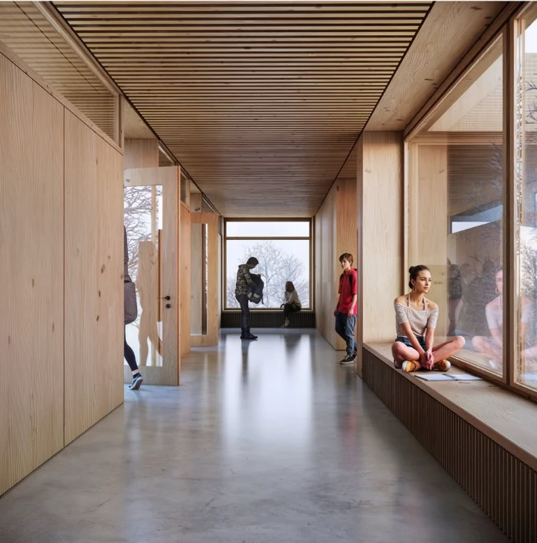 Kompleks oświatowy, składający się z liceum, zaplecza sportowego w postaci hali i boisk zewnętrznych oraz terenów służących rekreacji miała uzupełniać poradnia psychologiczno-pedagogiczna. Zgodnie z wymogami, projekt powinien umożliwiać ich rozdzielne funkcjonowanie. Wszystkie założenia realizuje koncepcja Atelier Tektura, która dzieląc obiekt na mniejsze drewniane elementy, sprytnie nawiązuje do skali zabudowy miasta.
