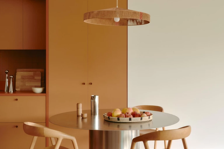 Ważną rolę odegrał tu kolor. Stonowane żółcie, zielenie i odcienie czerwieni nawiązują do oryginalnych fragmentów domu, podkreślając jego historię i klimat.