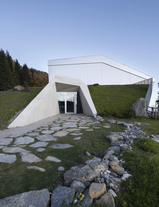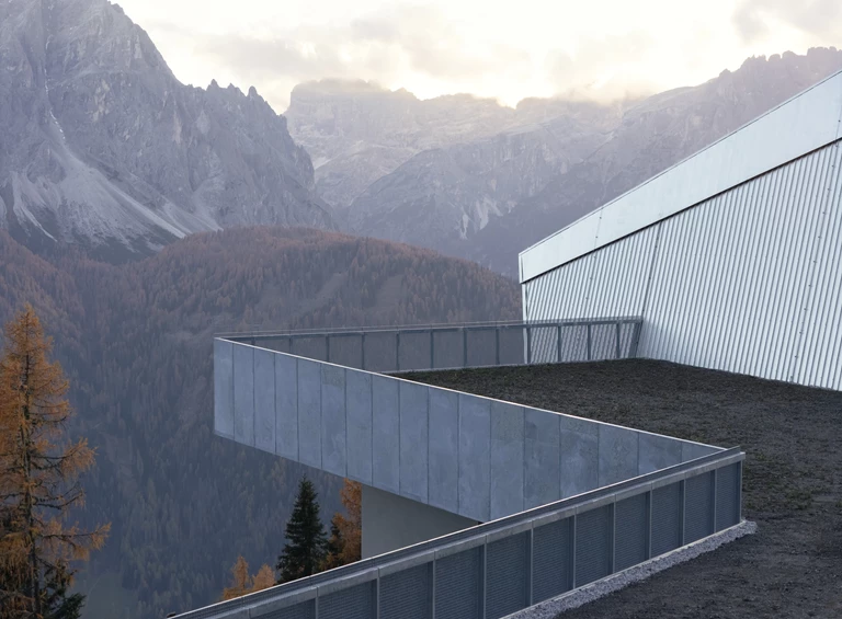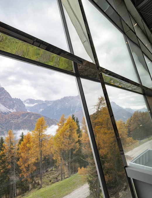 Z holu trasa schodzi do dawnych magazynów, a następnie do jaśniejszej części, gdzie otwiera się zapierający dech w piersiach widok na Dolomity. Pod dawną platformą kabiny powstał punkt widokowy. Prowadzi do niego falowana powierzchnia wykonana z betonu wylanego na gruz po rozbiórkach. W głównej hali architekci stworzyli pochyłą fasadę nawiązującą do pierwotnej stalowej struktury stacji i kadrującą przepiękną panoramę.