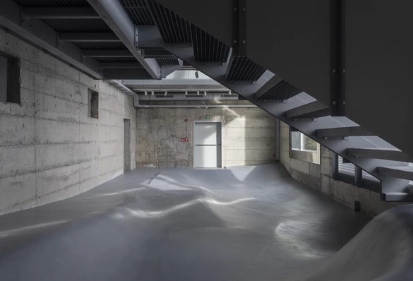 Jak mówią architekci, upcycling był tu głównym motywem przewodnim. Odzyskane cegły i rozebrany beton wykorzystali do kształtowania terenu w dolnej strefie, a oryginalną blachę przeznaczyli na podsufitkę nowego układu konstrukcyjnego. Budynek ma imponujące 1550 metrów powierzchni całkowitej, 4 kondygnacje i 18 m wysokości.