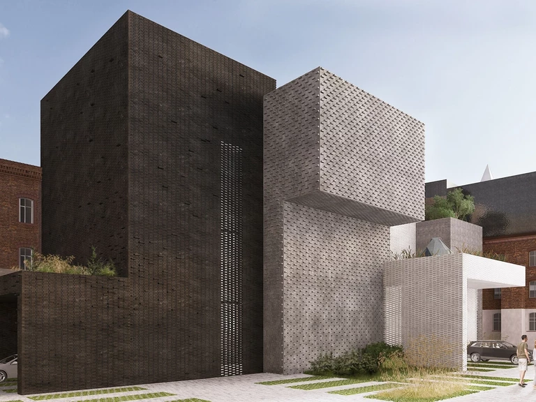 Za koncepcję architektoniczną budynku odpowiada pracownia KUMStudio. Najbardziej charakterystycznym elementem projektu jest fasada wykonana z cegły klinkierowej o zróżnicowanych odcieniach i fakturach. Poprzez zastosowanie wysuniętych i cofniętych modułów, architekci uzyskali efekt trójwymiarowości, który ma bezpośrednio nawiązywać do struktur skalnych i tektoniki górskiego krajobrazu.