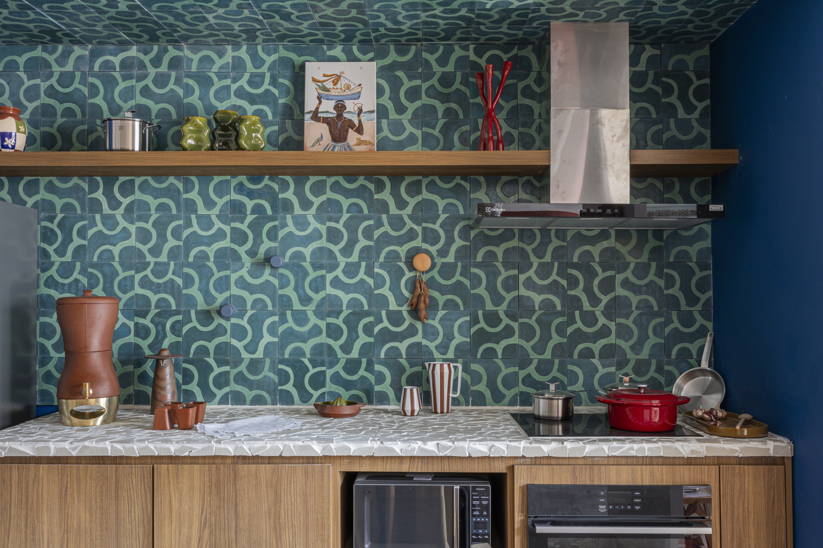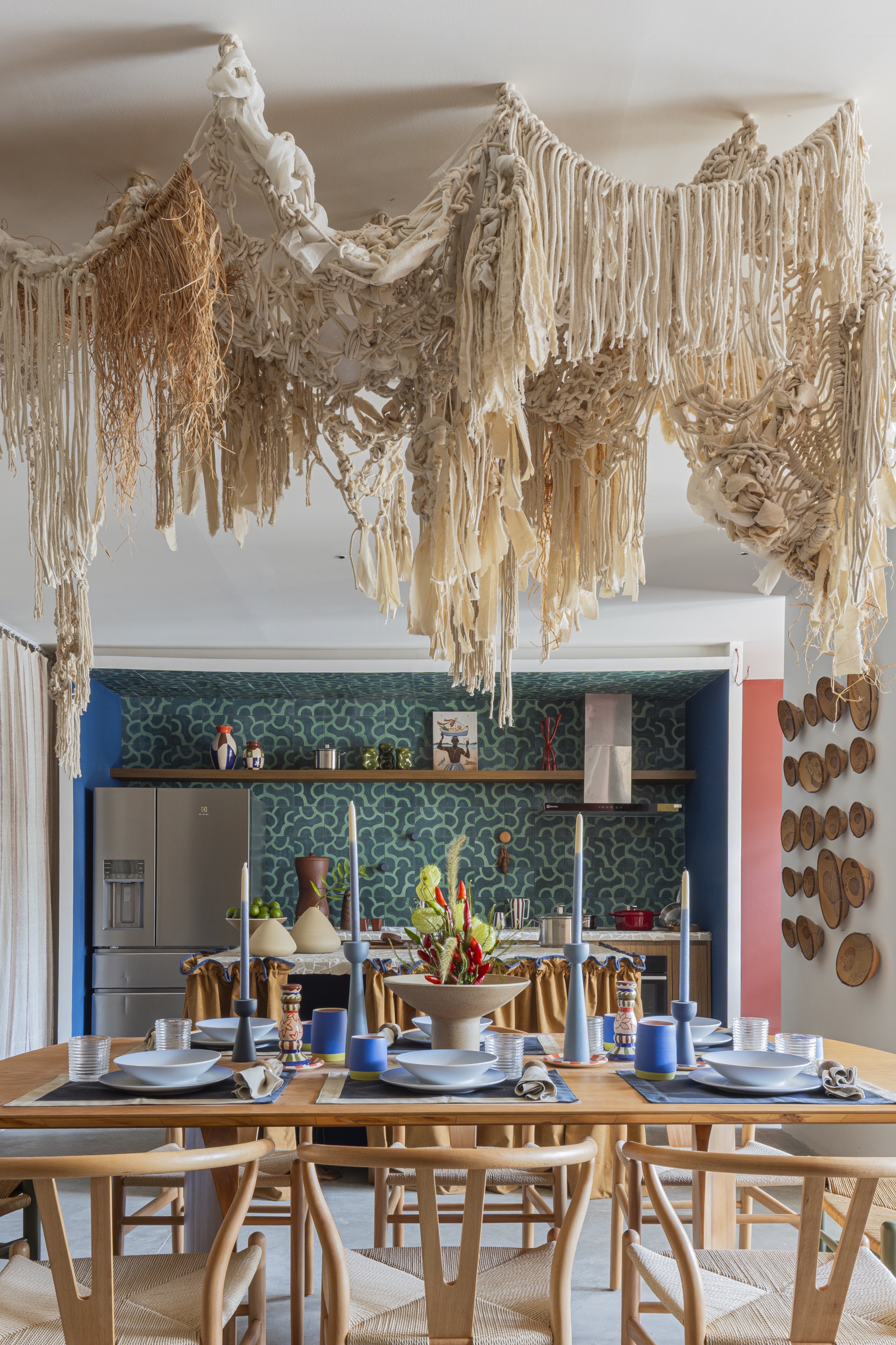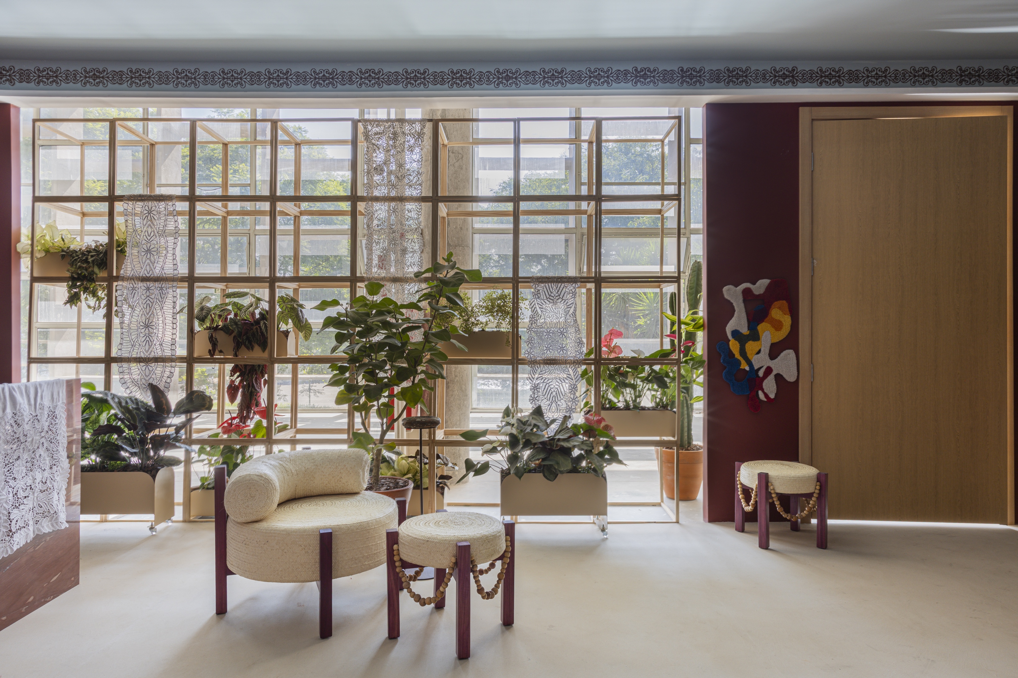 Projektanci świadomie uniknęli skojarzeń z cepelią czy karykaturą tradycji. Wybrali elementy, które od pokoleń budują wyobraźnię mieszkańców północno-wschodniej Brazylii: od charakterystycznej posadzki typu caquinho i płytek hydraulicznych, po kunsztowną słomę włoską oraz słynną koronkę irlandzką. Te materiały, zestawione z pracami lokalnych artystów i rzemieślników, tworzą wielowarstwową narrację, w której kultura nie jest tylko ozdobą, ale fundamentem całej koncepcji architektonicznej.