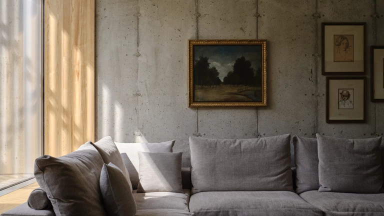 Ta bliskość natury nie stoi w sprzeczności z rygorami pasywności, przeciwnie - projekt wykorzystuje ją jako narzędzie. Północna fasada, która w budynkach zwykle uchodzi za problematyczną, została tu potraktowana jako przezierna membrana, za którą precyzyjnie zaprojektowana izolacja i przemyślany układ warstw pozwalają utrzymać komfort cieplny. Kluczowym gestem była decyzja o umieszczeniu grubej, ciągłej warstwy izolacji po zewnętrznej stronie przegrody; dzięki temu od wewnątrz można było odsłonić betonowe ściany fundamentowe, zyskując ich masę akumulacyjną jako regulator temperatury. Rubin podkreśla, że przyszłość zasilania budynków widzi jako elektryczną i odnawialną, a pierwszym krokiem do „uodpornienia” domu jest drastyczne zmniejszenie zapotrzebowania na energię przez super‑izolowane, szczelne przegrody.