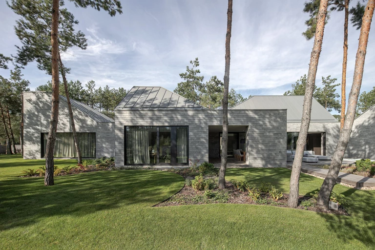 Dom Wieloczłonowy to jedna z ostatnich realizacji uznanej pracowni PL.ARCHITEKCI. Budynek stanął w okolicach Poznania, na działce gęsto porośniętej wysokimi sosnami. Nie tylko wpisanie bryły w drzewa okazało się wyzwaniem, również spora lista wymagań przedstawiona przez inwestorów podyktowała niesztampowe podejście i rozwiązania szyte na miarę.