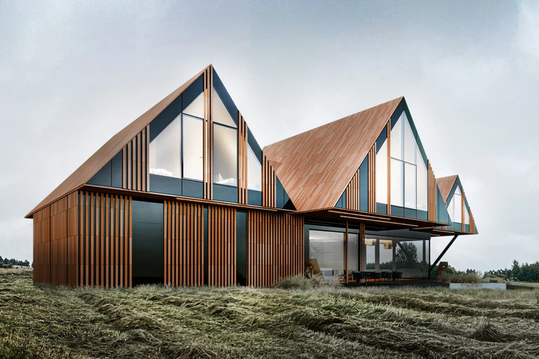 Domki letniskowe Brda, bo do nich nawiązuje Tomaszewski, zostały przedstawione w dość oryginalny sposób tj. w postaci trzech brył o przekroju trójkąta, umieszczonych na prostopadłościanie. Każda bryła, tzw. Brda została wzajemnie scalona łącznikiem, od zewnątrz pokrytym materiałem lustrzanym, zaś od wewnątrz pełniącym funkcję korytarza. A skoro o funkcjach mowa, każdy z zaprojektowanych trójkątów ma swoją rolę w projekcie. Mianowicie – osobne „mieszkania” dla domowników. Zarówno syn, jak i rodzice mają swoją przestrzeń, a ostatnia Brda stanowi strefę dla gości. Aby jeszcze bardziej podkreślić oczekiwany klimat wakacyjnego relaksu, we wnętrzu domu zostały zaprojektowane miejsca dla ciała i dla duszy. Mowa o pomieszczeniach do jogi, saunie i innych udogodnieniach, które będą sprzyjały wypoczynkowi.