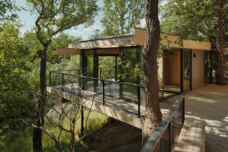 Pracownia Mork-Ulnes Architects, której biura znajdują się w San Francisco i Oslo, realizuje projekty w duchu praktycznego idealizmu – oszczędne w środkach, lecz bogate w pomysł i detal. Taki jest też kompleks Pavilion in the Oaks – nowoczesny, a zarazem harmonijnie zintegrowany z otoczeniem.