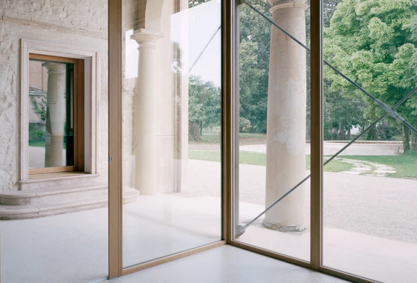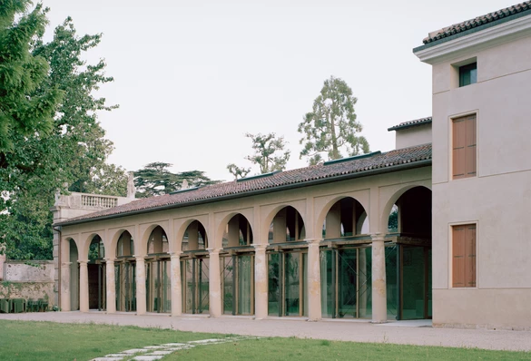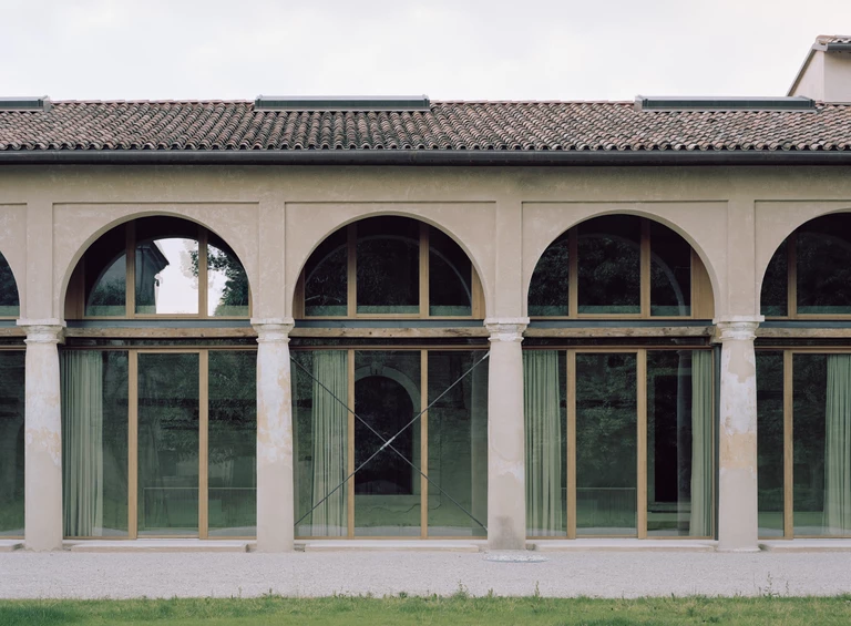Równie spektakularna przemiana dotknęła dawną loggię, którą wspierają osiemnastowieczne kolumny w porządku toskańskim. Architekci wprowadzili tam lekką, niezależną strukturę z drewna i szkła, która mieści salę wielofunkcyjną przeznaczoną na wydarzenia i konferencje.