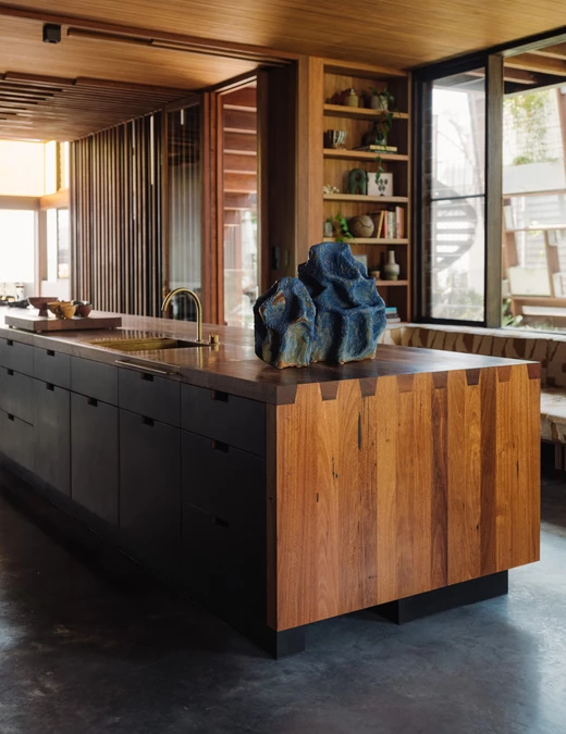 Większość domów w tej okolicy odwraca się od buszu, skupiając na morzu. Nasi klienci chcieli czegoś odwrotnego – domu wpisanego w krajobraz, otwartego zarówno na ocean, jak i na przyrodę za plecami – mówi Cole.