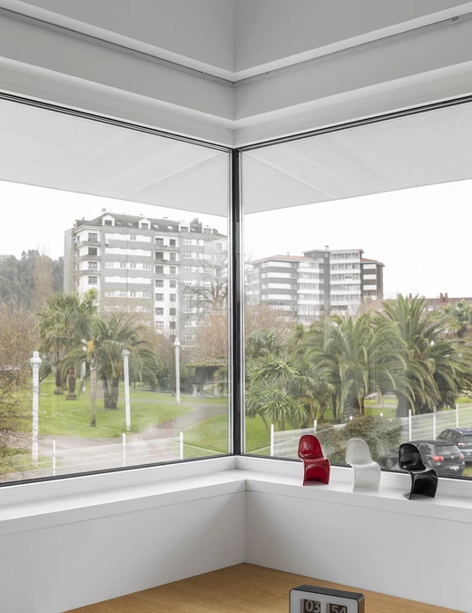 Poza swoim oryginalnym kształtem, „Vivenda Madreselva” przyciąga uwagę także ciekawą elewacją z cynku nawiązującą do tradycyjnychkonstrukcji budowlanych znajdujących się w Asturii. Stalowy kolor elewacji dodatkowo podkreśla otaczający posiadłość biały płot.