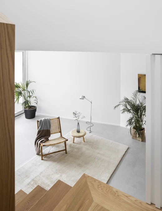 Poza drewnem do wykończenia pomieszczeń użyto także hiszpańskiej ceramiki Porcelanosa. Poszczególne meble zostały dobrane z wielką starannością. Architekci postawili między innymi na klasyczne ikony marki Vitra.