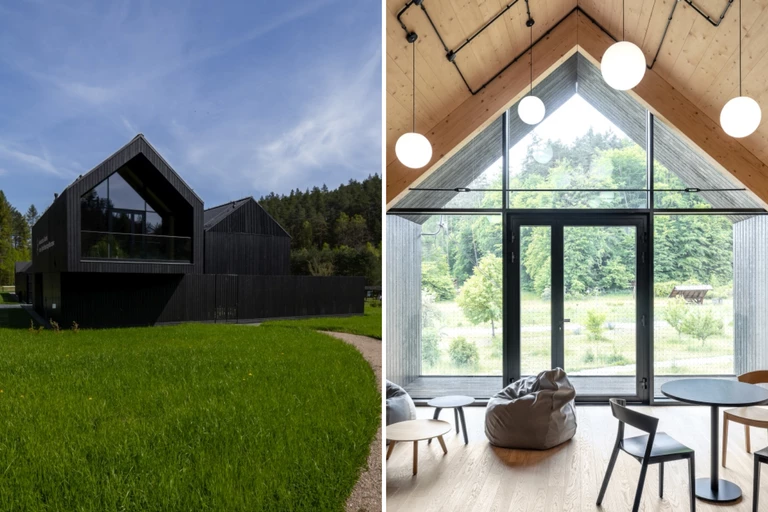 Emanujące naturalnym ciepłem drewno użyte wewnątrz budynku kontrastuje z czarną okładziną fasady. Powierzchnia desek została celowo zwęglona przy użyciu starożytnej japońskiej techniki Shou Sugi Ban. Ta nietypowa metoda wykończenia nawiązuje do tradycji regionu, gdy rolnicy w ten oryginalny, a przy tym naturalny sposób zabezpieczali drewno przed działaniem warunków atmosferycznych, promieniami UV i szkodnikami, przeciwdziałając jego degradacji. Podobnie jak w przypadku zastosowania technologii CLT, jest to pierwsza w Polsce realizacja budynku użyteczności publicznej z taką elewacją.