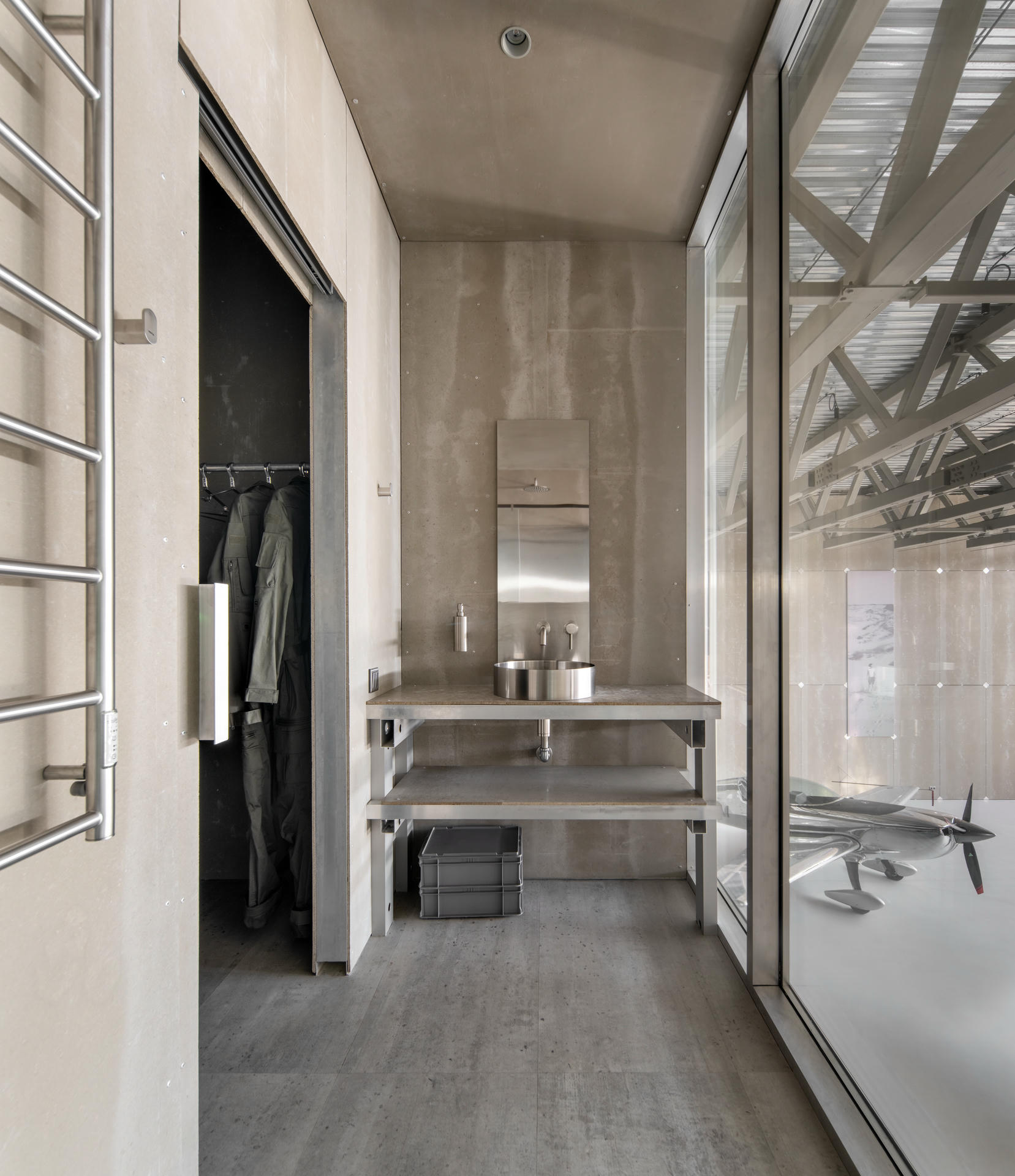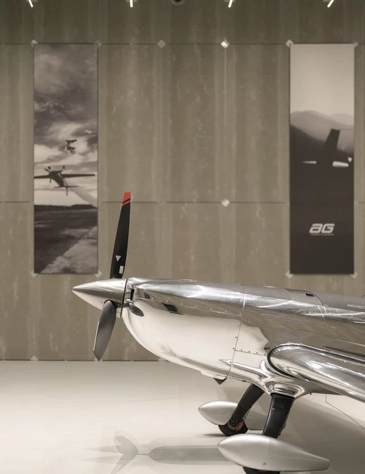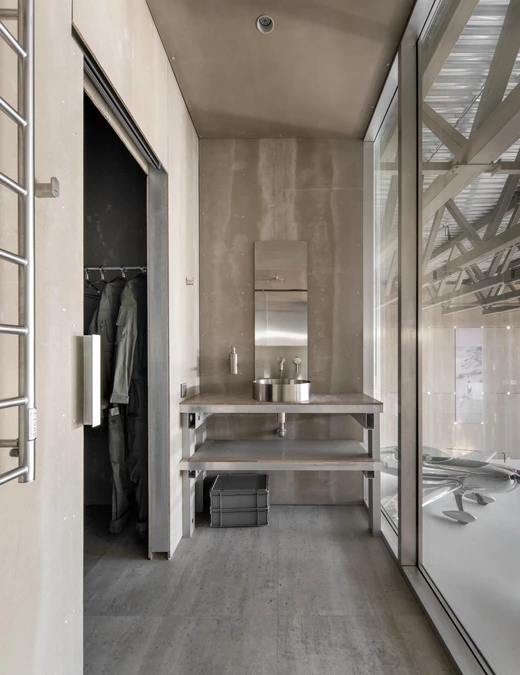 „Gdy Timur skontaktował się z nami z pomysłem stworzenia hangaru – pełnoprawnej przestrzeni serwisowej dla wszystkich samolotów SPORT oraz miejsca spotkań zespołu – przyjęliśmy to wyzwanie bez wahania” – przyznają projektanci. Szybko okazało się, że to jeden z najbardziej interesujących, ale i najbardziej wymagających projektów, jakie kiedykolwiek mieli okazję zrealizować. Autorem koncepcji wnętrz jest Dan Vakhrameyev, który postawił na szczerość materiałów i klarowność rozwiązań.