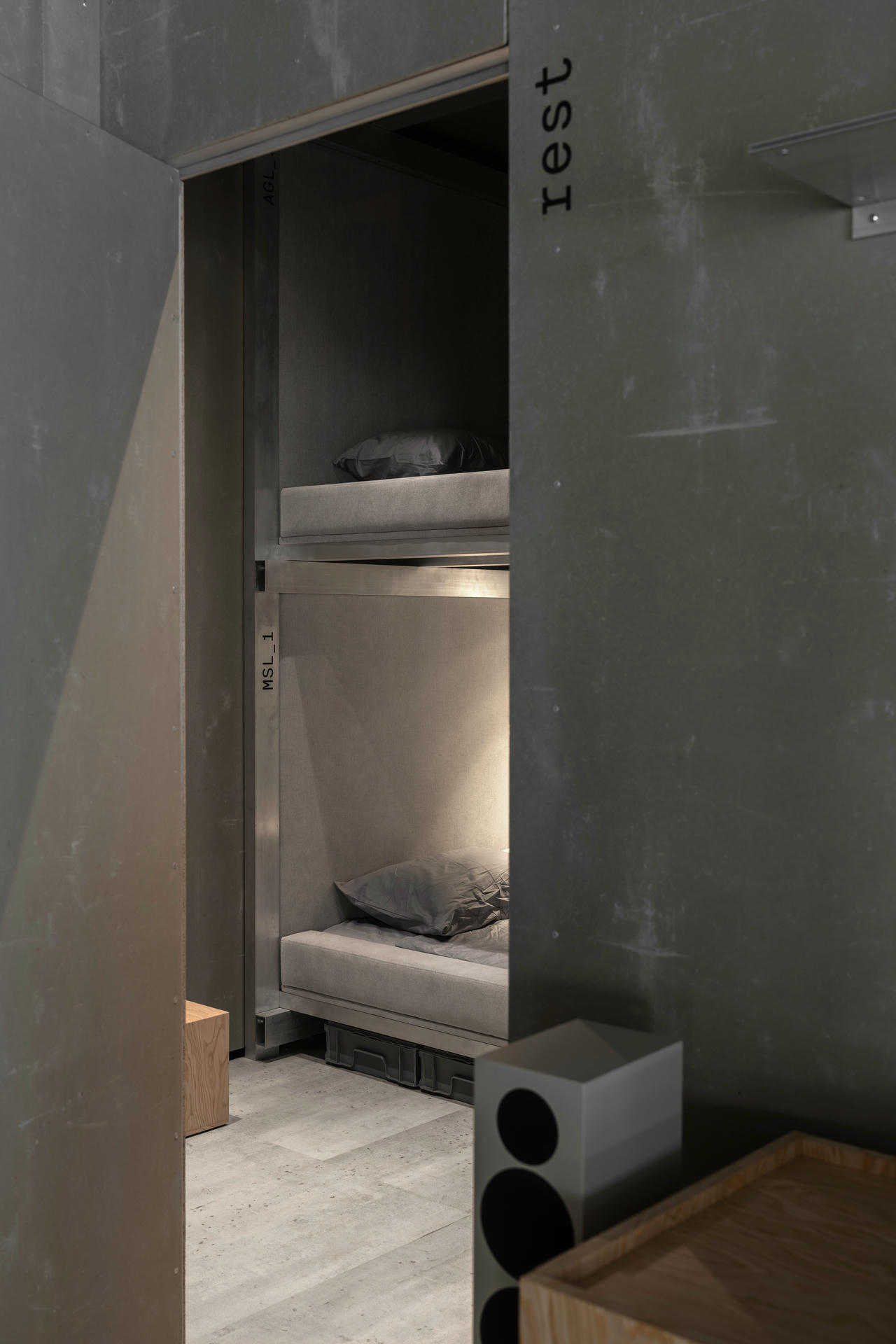 Strefa snu została zaprojektowana jako zwarta, zamknięta przestrzeń. Komfortowe łóżka są rozmieszczone maksymalnie efektywnie, by sprzyjać odpoczynkowi pomiędzy lotami. Tapicerowane panele tekstylne poprawiają akustykę wnętrza, a miękkie, zintegrowane oświetlenie pozwala na mentalny reset.