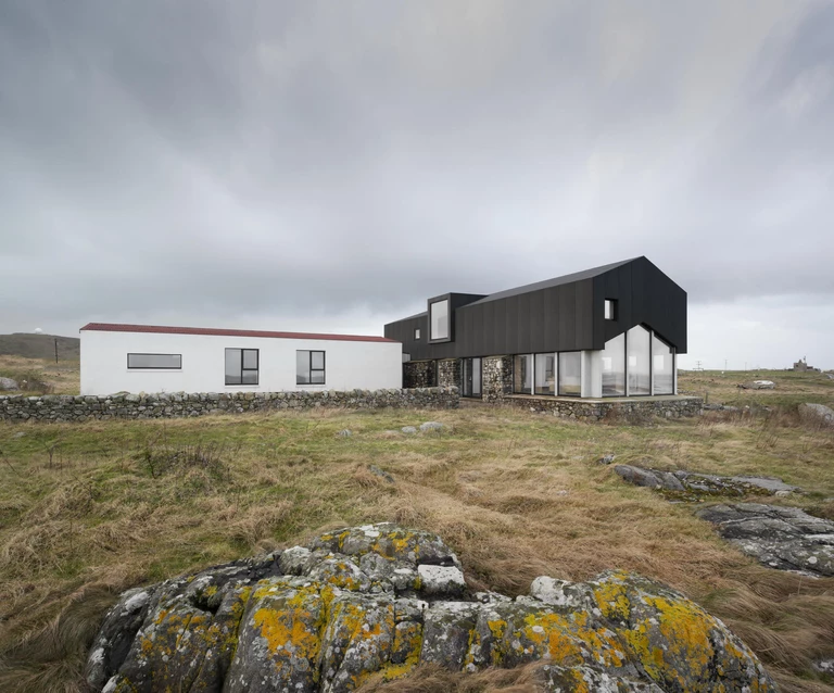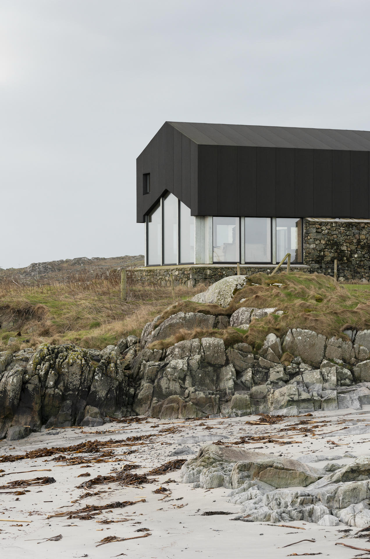 Architekci z pracowni Denizen Works postanowili wkomponować nowy dom w pozostałości dawnych zabudowań. Kamienne mury wyznaczyły strukturę nowego budynku, a forma dwóch szczytów nadała mu wyrazisty, rzeźbiarski charakter. Od frontu prowadzi wejście przez kamienny szczyt na dziedziniec ogrodowy, z którego rozpościera się widok na Hynish i słynne domki latarników zaprojektowane przez Alana Stevensona.