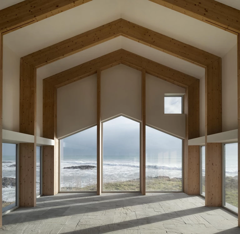 Widoki na morze są otwarte, a kontakt z pejzażem bezpośredni. Główna przestrzeń dzienna daje wrażenie, jakby dom stał na dziobie promu, zanurzonego w bezkresnym morzu.