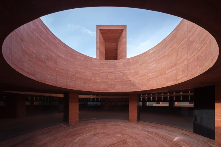 Na najwyższym poziomie znajduje się monument obłożony czerwonym trawertynem. Mieści się w nim klubowy lounge i amfiteatr pod gołym niebem. Elewację tworzą płyty kamienne. Od północno-zachodniej strony istniejącego muzeum prowadzi przejście na taras przypominający wydrążoną misę. To przestrzeń otwarta dla miasta – miejsce wydarzeń, koncertów czy pokazów mody, ale też punkt widokowy i strefa odpoczynku.