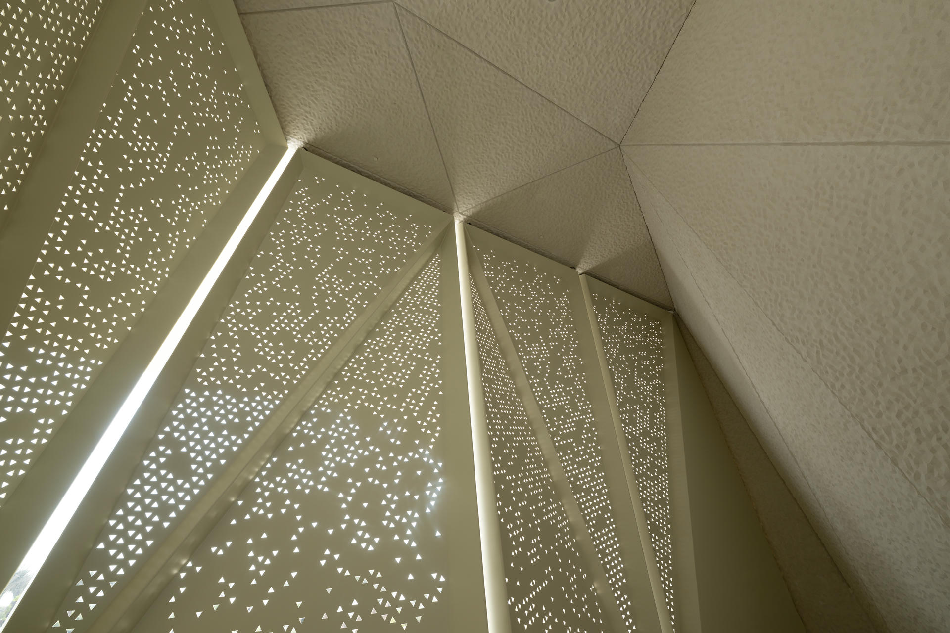 Charakterystycznym elementem bryły jest pięć lekkich, stalowych skrzydeł pełniących funkcję naturalnych kominów wentylacyjnych. Dzięki podciśnieniu powstającemu na zawietrznej stronie wież oraz nagrzewaniu ich szczytów, gorące powietrze jest odprowadzane z atrium, a schłodzone w podziemnych kanałach powietrze trafia do wnętrza. Skrzydła są przeszklone i regulowane, a ich geometria zapewnia dopływ naturalnego światła do galerii.