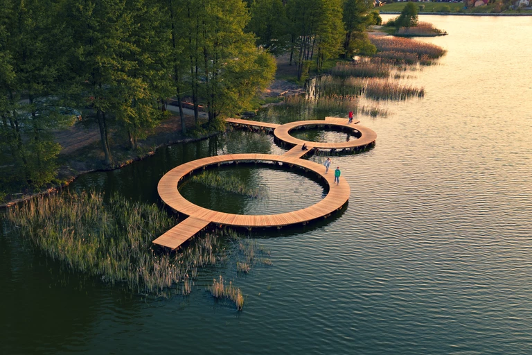 Na jeziorze w Słupcy w Wielkopolsce wybudowano właśnie pierwszy element powstającej tam promenady. To minimalistyczny pomost w kształcie połączonych ze sobą dwóch okręgów. Za projekt odpowiada wielokrotnie nagradzany za projekty przestrzeni publicznych Paweł Grobelny.