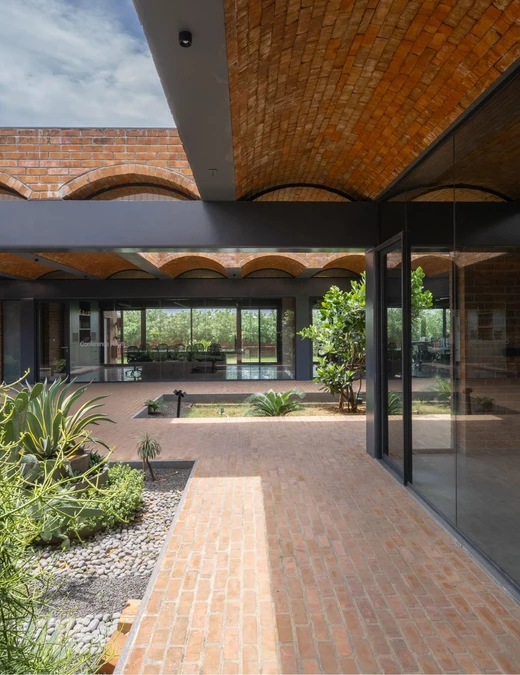 Z Indii pochodzi Metallic Bellows Factory Office w Chennai – ekologiczny projekt inspirowany lokalnymi cegielniami. Parterowy budynek z tradycyjnym sklepieniem typu jack arch ogranicza użycie betonu, eksponując naturalne piękno lokalnej cegły.
