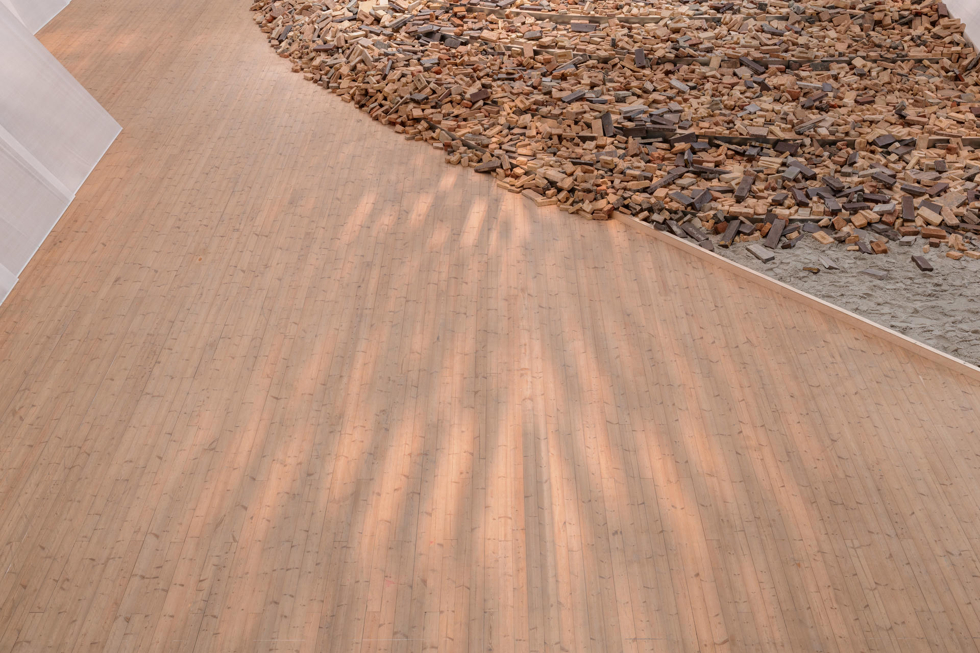 Zastosowanie ma tu japońskie pojęcie komorebi, opisujące światło słoneczne przenikające przez liście drzew. Nad głowami zwiedzających zawieszona została monumentalna, ręcznie wykonana struktura z drewnianych elementów, która filtruje światło i kieruje je w stronę kamiennej posadzki, tworząc immersyjne, fizyczne doświadczenie.