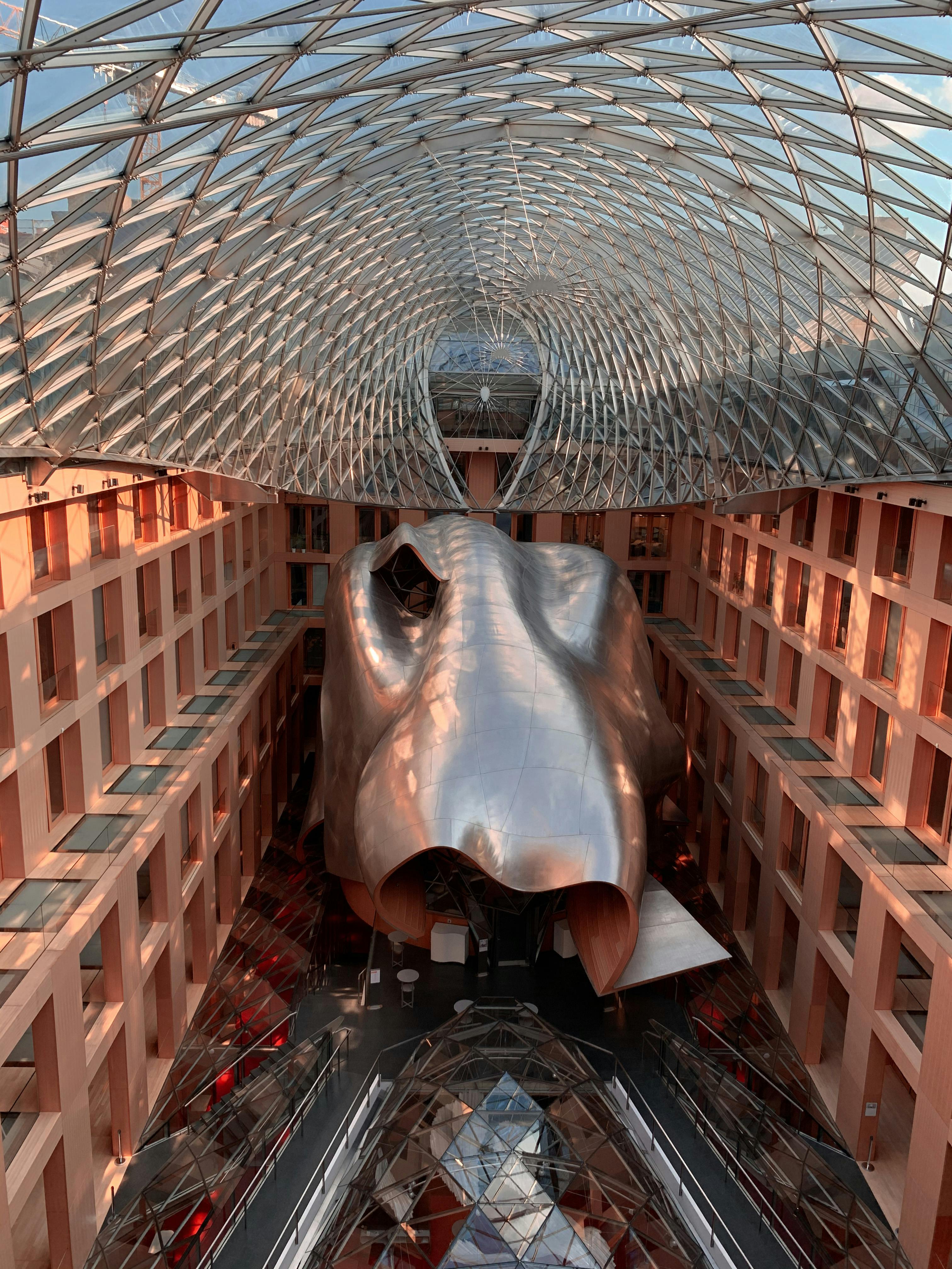 Hiszpańskie muzeum sztuki współczesnej to jeden z najsłynniejszych budynków Franka Gehry’ego i ikona światowej architektury. Zostało otwarte w 1997 roku i szybko zasłynęło swoją rzeźbiarską formą z falujących, tytanowych płyt oraz niezwykłą grą światła.