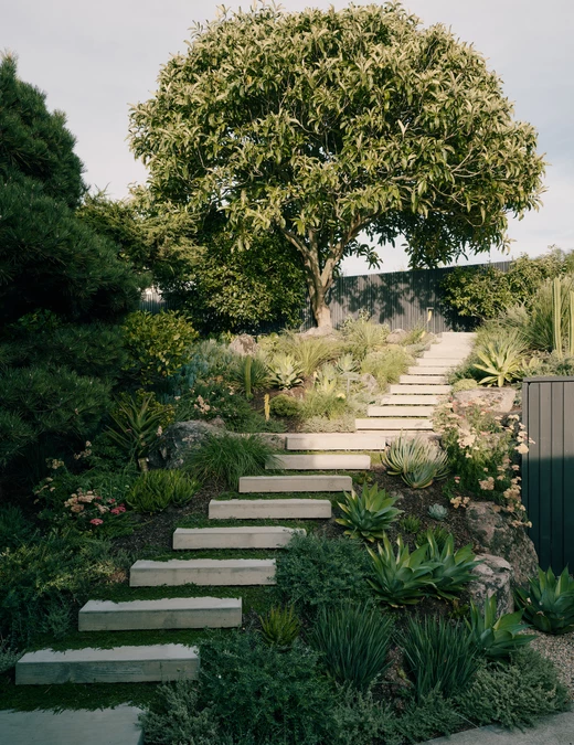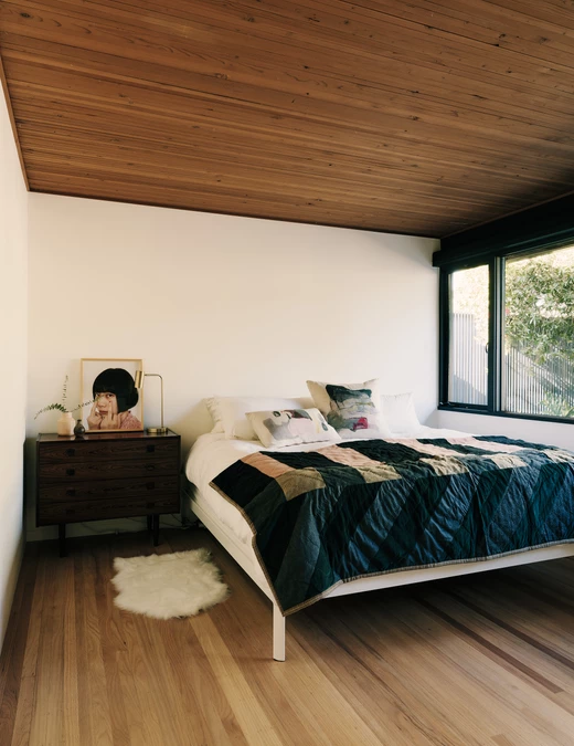 Architekci wzmocnili także relację domu z otoczeniem. Kuchnia, salon i główna sypialnia otwierają się na ogród, a po przeciwnej stronie przestrzeń dzienna prowadzi w kierunku panoramicznego widoku na zatokę. Dzięki subtelnym zmianom planu architekci uporządkowali przepływ przestrzeni i światła, pozostając jednocześnie wiernym pierwotnej koncepcji architektonicznej.