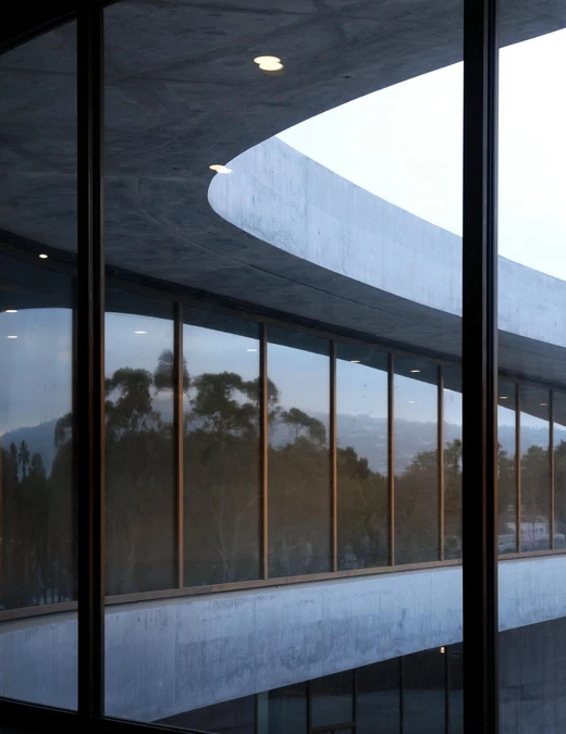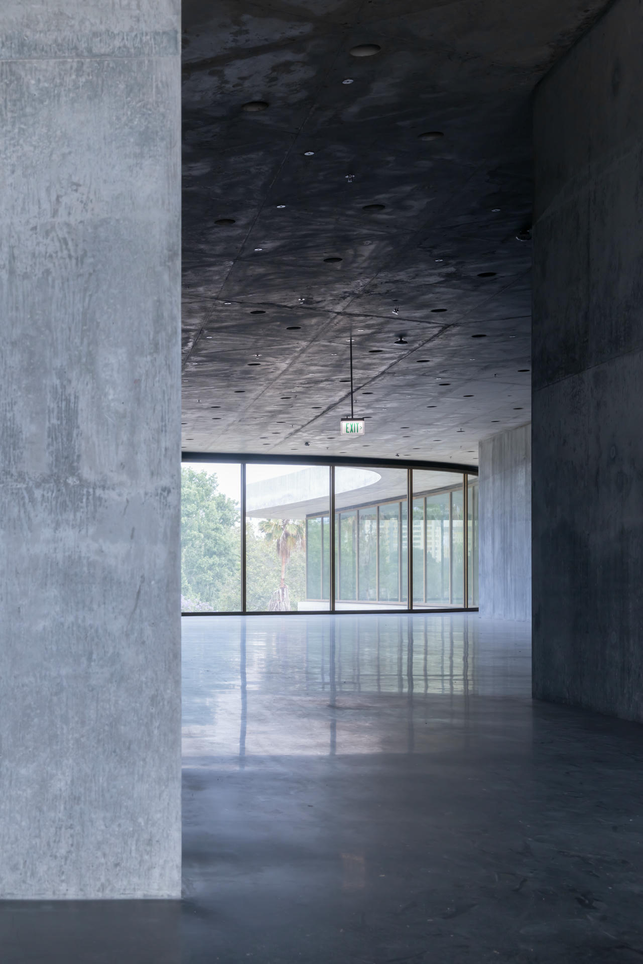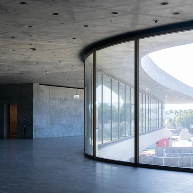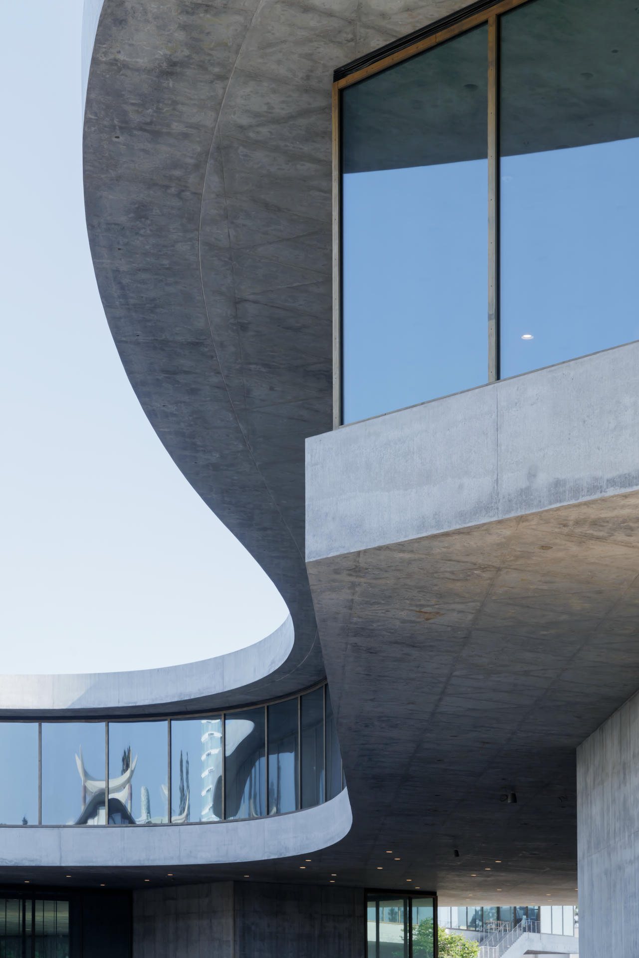 Pod podniesioną bryłą budynku rozlokowano siedem pawilonów z przestrzeniami edukacyjnymi, restauracjami i sklepami. Pomiędzy nimi powstały zacienione, otwarte strefy przeznaczone na sztukę publiczną i wydarzenia. Architektura płynnie łączy się z zielonymi terenami wypełnionymi rzeźbami i rodzimą, odporną na suszę roślinnością.