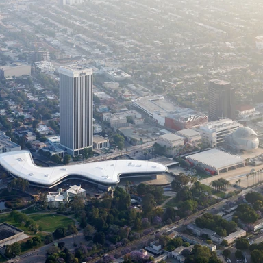 Z daleka gmach sprawia wrażenie niemal unoszącego się nad ziemią – główna kondygnacja została podniesiona około dziewięciu metrów ponad poziom ulicy i rozciąga się niczym horyzontalny gest wpisany w panoramę miasta. 19 kwietnia dla publiczności otworzą się Galerie Davida Geffena, czyli nowa siedziba stałej kolekcji LACMA, zaprojektowana przez szwajcarskiego architekta Petera Zumthora.