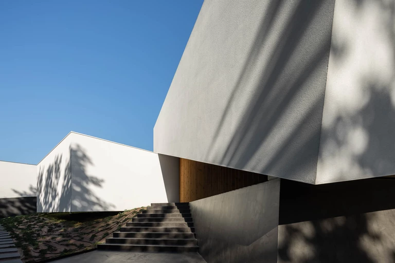 Ze słonecznej strefy budynku, na którą składają się salon z jadalnią, prowadzi wyjście na basen. Obszar nocny, składający się z sypialni i łazienek, umiejscowiony jest na wschodzie. Wokół budynku, na różnych wysokościach umieszczono okna, które umożliwiają kontemplowanie natury otaczającej dom z niemal każdego zakątka budynku.
