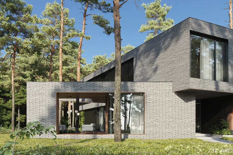 Budynek powstaje w malowniczej leśnej scenerii Sękocina Lasu pod Warszawą. Projekt harmonijnie łączy funkcjonalność, estetykę oraz poszanowanie dla otaczającej przyrody. Nietypowa działka i specyficzne warunki urbanistyczne stały się inspiracją do stworzenia bryły budynku, która wykorzystuje każdy centymetr przestrzeni, jednocześnie otwierając dom na otaczający go zielony krajobraz.
