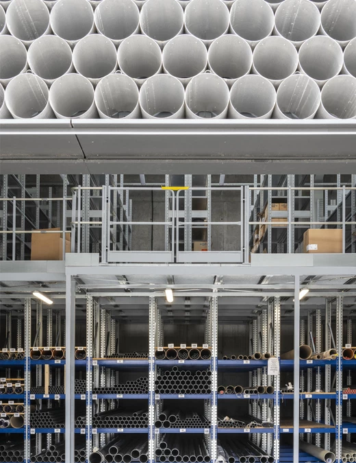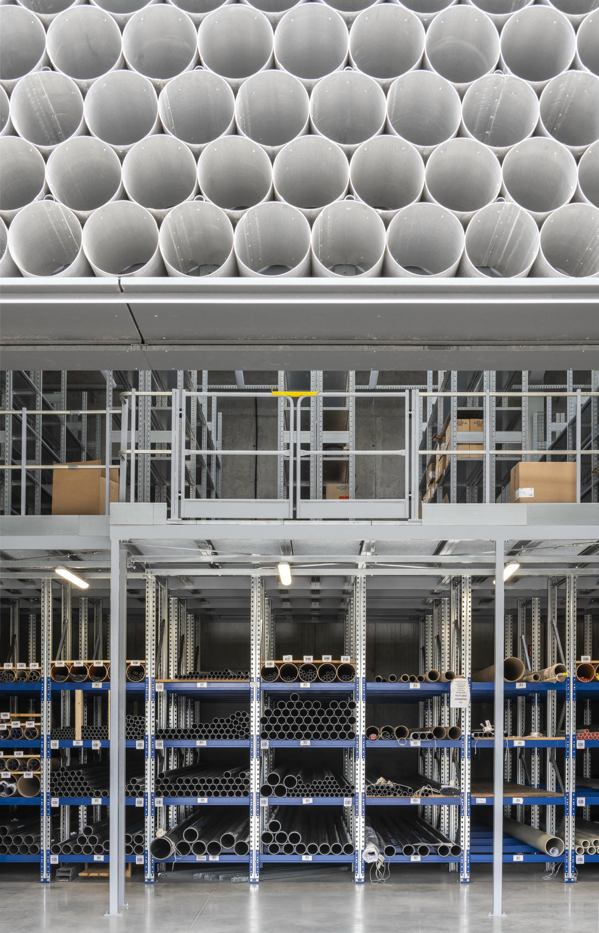 Obiekt jest siedzibą firmy Gambit, która zajmuje się dystrybucją specjalistycznych rur. Architekci postanowili więc wykorzystać materiał, którym handluje inwestor – rury – czyniąc je punktem wyjścia dla formy i idei budynku.