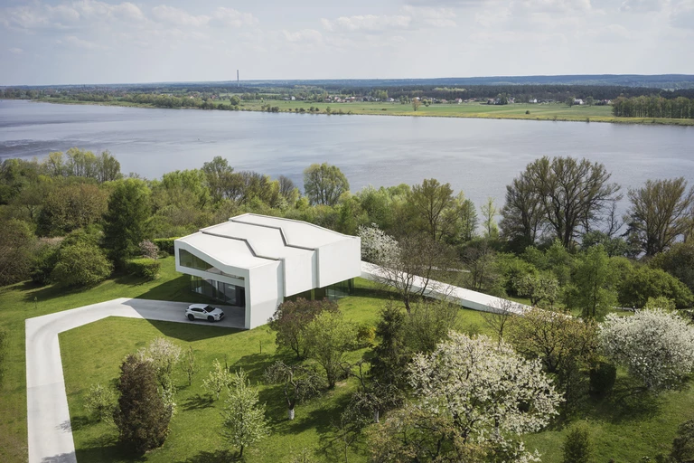 Dziś jeden z najbardziej rozpoznawalnych projektów Roberta Koniecznego i pracowni KWK Promes. Monumentalna, betonowa bryła o rzeźbiarskiej formie została zaprojektowana jako dom-schron – zamknięty z zewnątrz, a jednocześnie w kontrolowany sposób otwierający się na krajobraz.