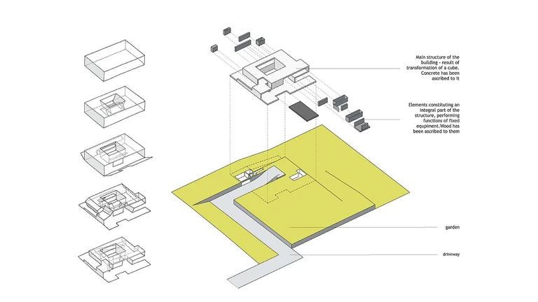 Inwestor dysponował piękną działką i od początku wiedział, czego chce: dobrze żyło mu się w apartamencie i chciał przenieść jego układ funkcjonalny do nowego domu. Robert Konieczny nie był do tego pomysłu przekonany – aż do momentu, w którym pojawiła się idea projektu.