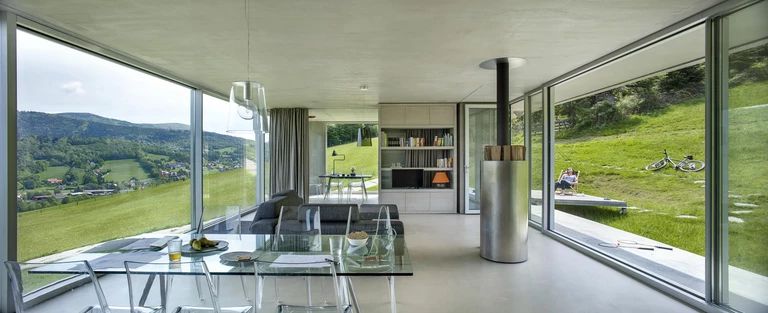 Najnowszy dom jednorodzinny autorstwa Roberta Koniecznego i pracowni KWK Promes. Został wpisany w strome zbocze Beskidów – nie walczy z ukształtowaniem terenu, lecz wykorzystuje spadek, widoki i naturalne światło.