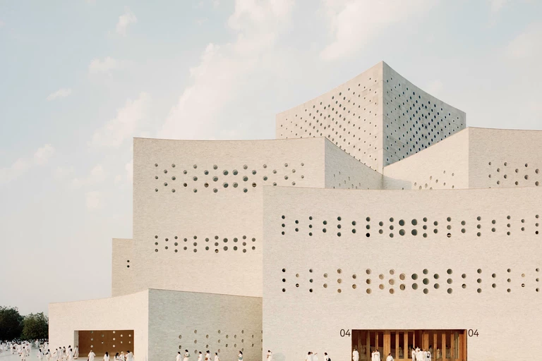 Trzy kamienne pawilony inspirowane lokalnymi jaskiniami, które tworzą scenę, bibliotekę i miejsce wydarzeń. Jury uznało je za intrygujące, elastyczne i wizualnie wyjątkowe.