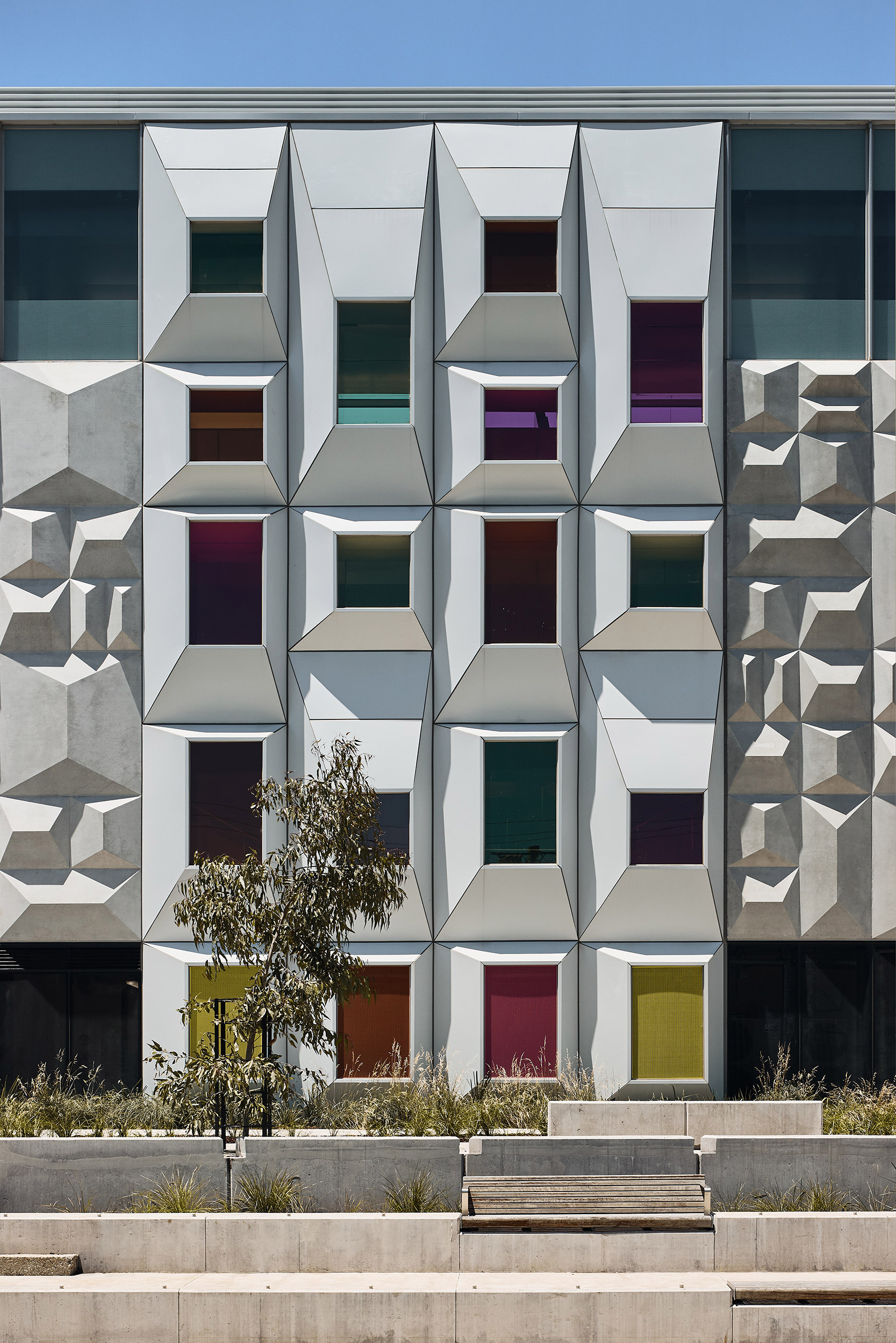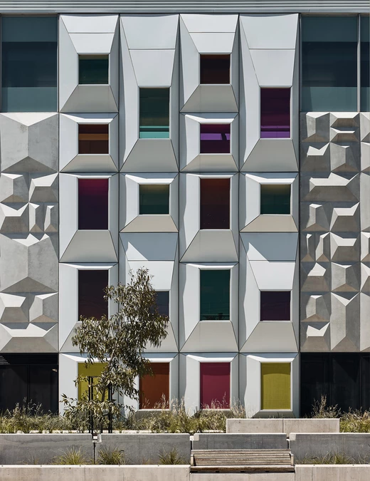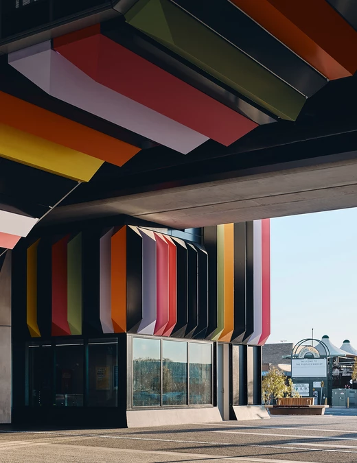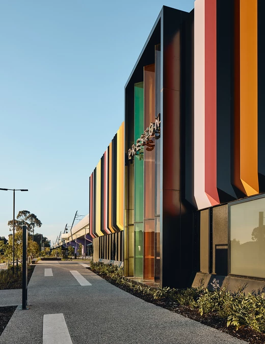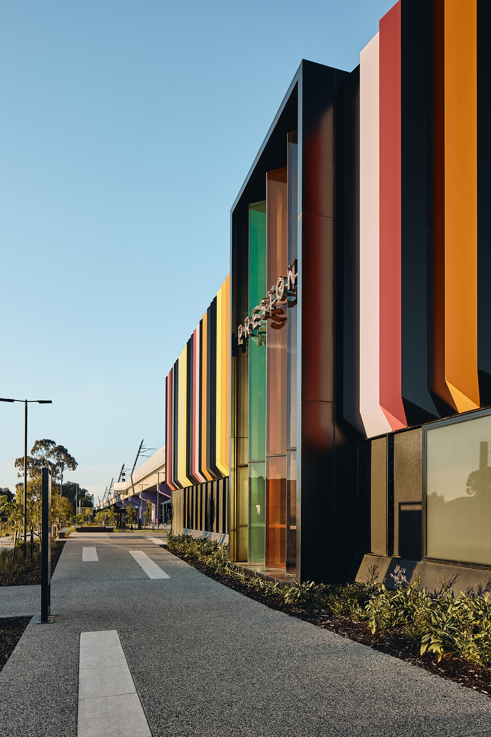 Barwy, inspirowane iluminacją pobliskiego Darebin Arts & Entertainment Centre, tworzą dynamiczną atmosferę, redukując przy tym zapotrzebowanie na sztuczne oświetlenie. Tuż obok powstał publiczny amfiteatr, pełniący zarazem funkcję zbiornika retencyjnego – rozwiązanie, które w inteligentny sposób łączy kulturę, ekologię i infrastrukturę.