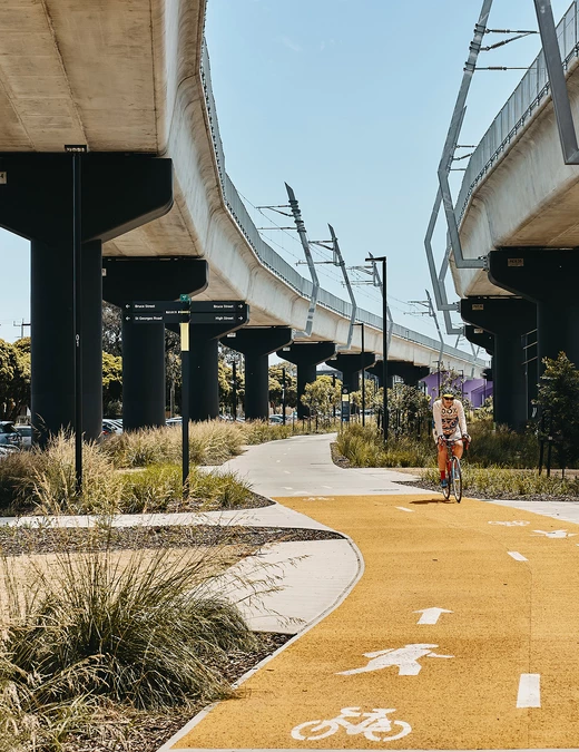 W ramach projektu uwzględniono elementy inspirowane kulturą rdzennych społeczności Australii. W krajobrazie pojawiły się przestrzenie do rozmów i spotkań oraz motywy graficzne oparte na sztuce rdzennych społeczności, widoczne m.in. na ekranach wiaduktów i w ornamentyce szybów windowych. Dzięki temu przestrzeń sprzyja edukacji kulturowej i inkluzywności.